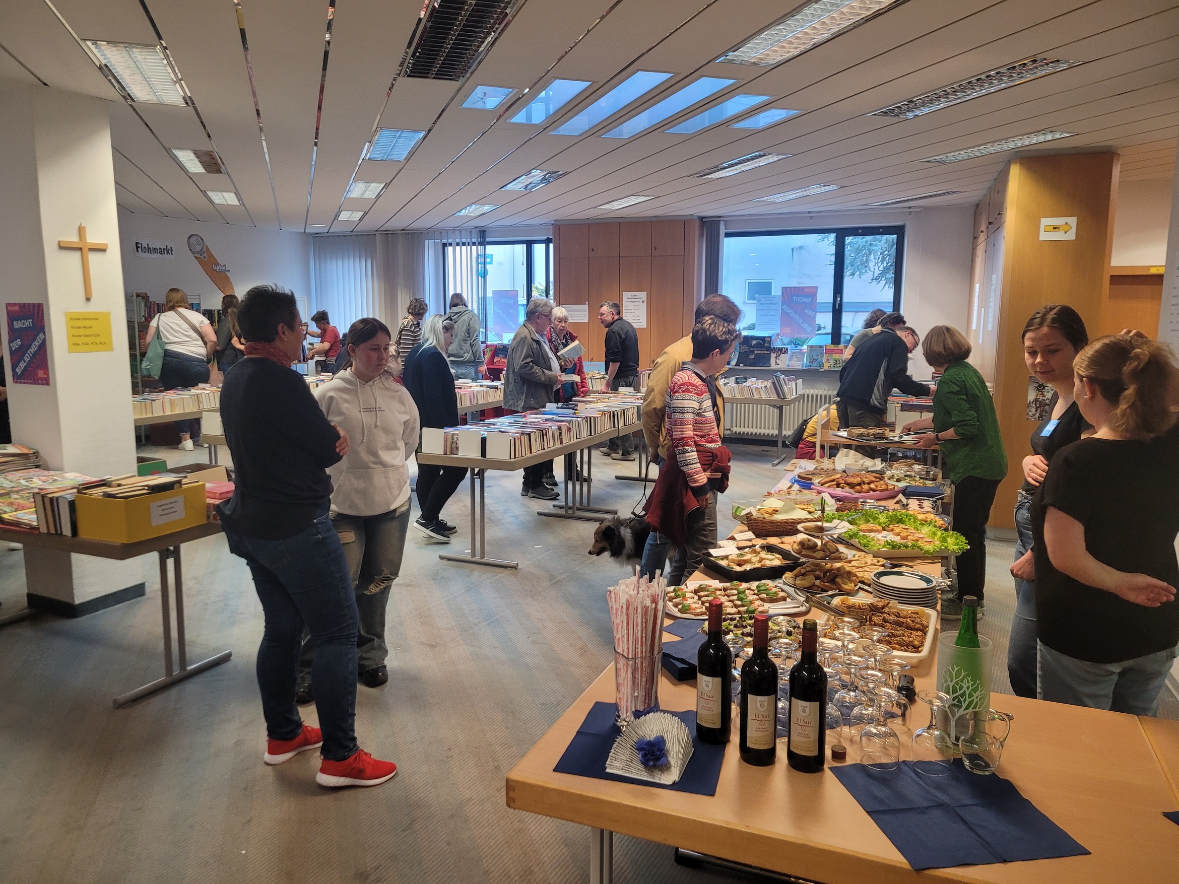 Letzte Woche fand erstmalig unser Nachtflohmarkt im Rahmen der "Nacht der Bibliotheken" statt. Nachdem unsere Besucherinnen und Besucher die Bücher kiloweise erstehen konnten stärkten sie sich an dem reichhaltigen Fingerfood-Buffett. Hier war wirklich für jeden Geschmack etwas dabei. Danke an all unsere Mitarbeiterinnen und Mitarbeiter, die dies ermöglicht haben. Vielen Dank auch an alle Besucherinnen und Besucher des Flohmarktes, die diese Veranstaltung zu einem Erfolg machten. Wir freuen uns bereits auf das nächste Jahr.